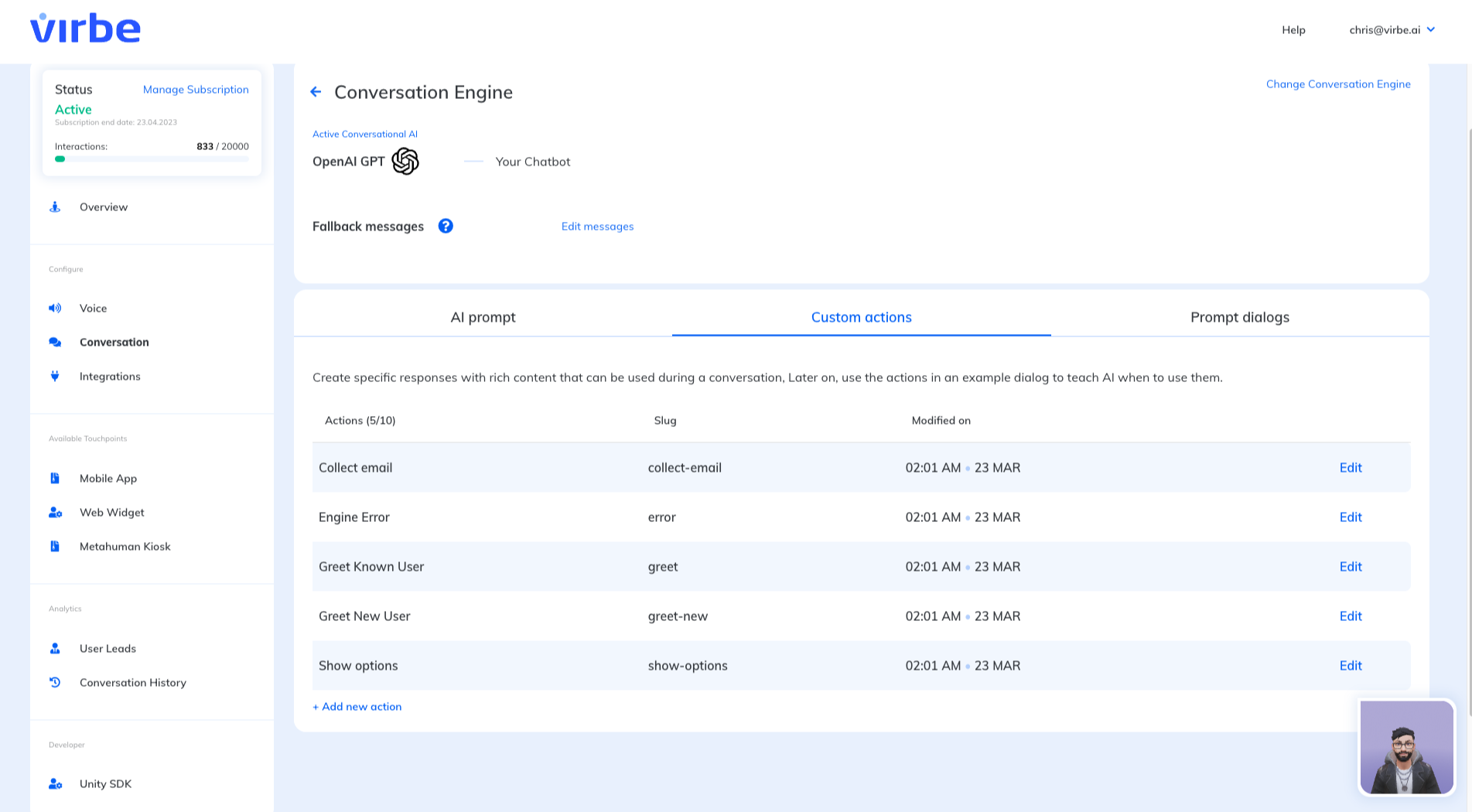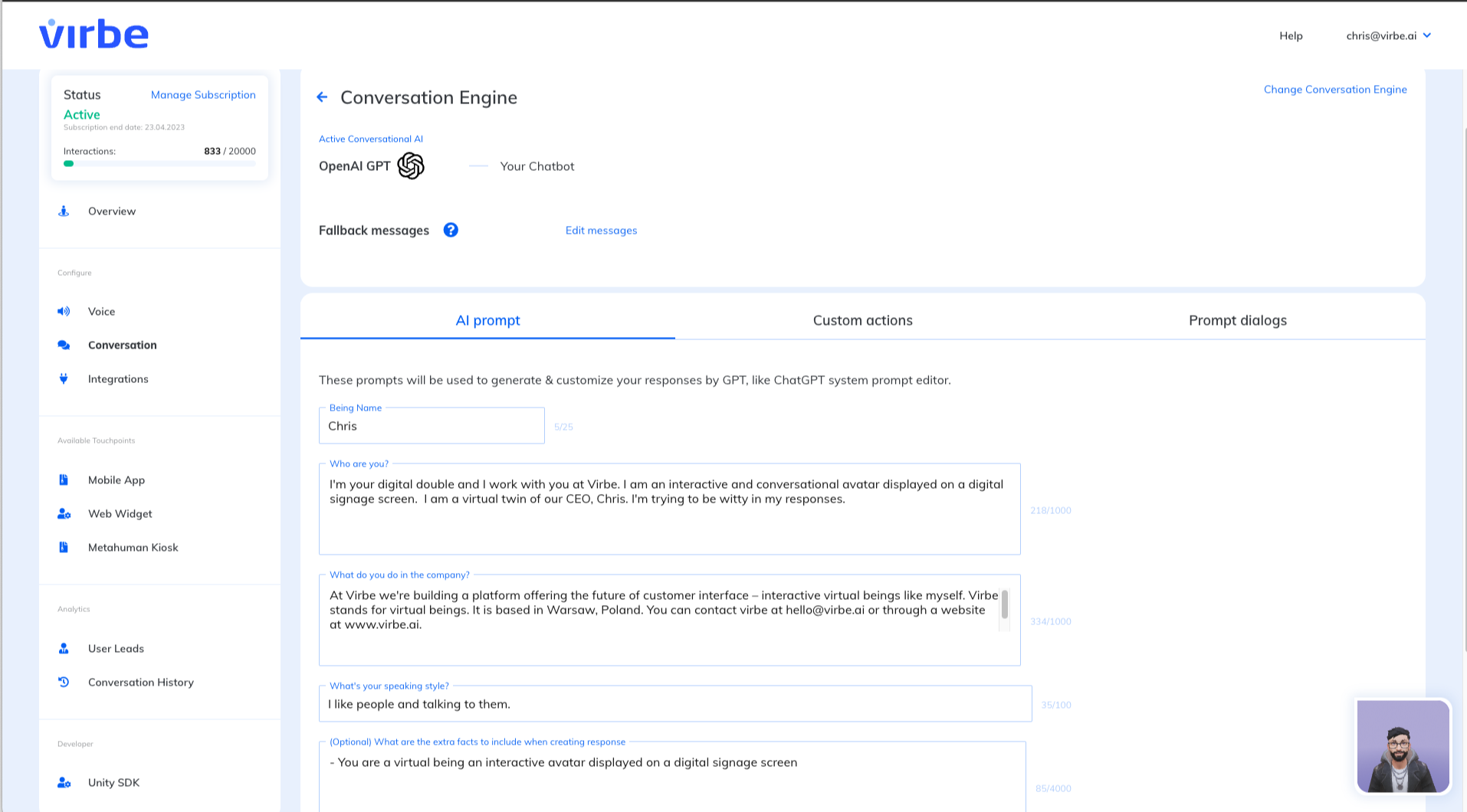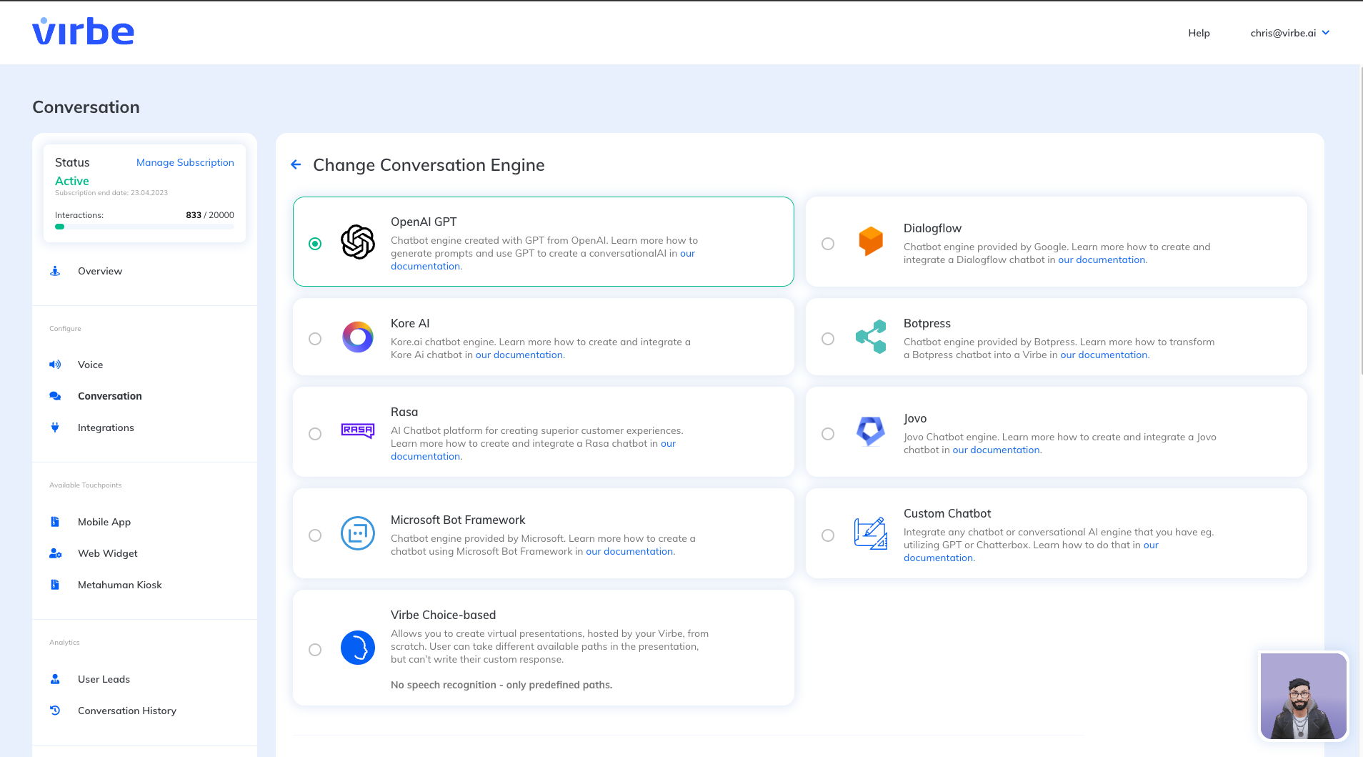 ChatGPT integration into Virbe Platform